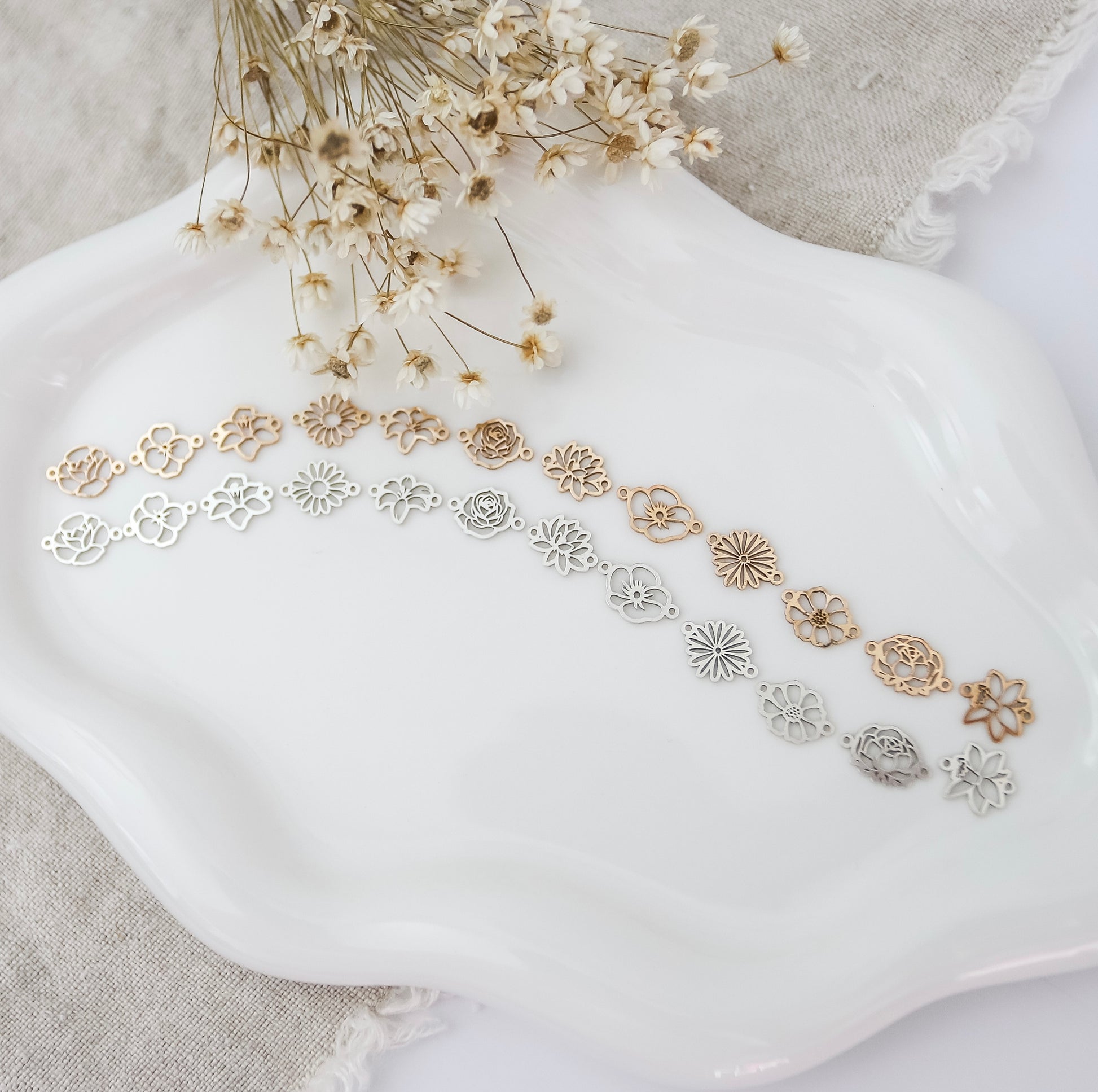 14k gold filled/sterling silver birth flower connector