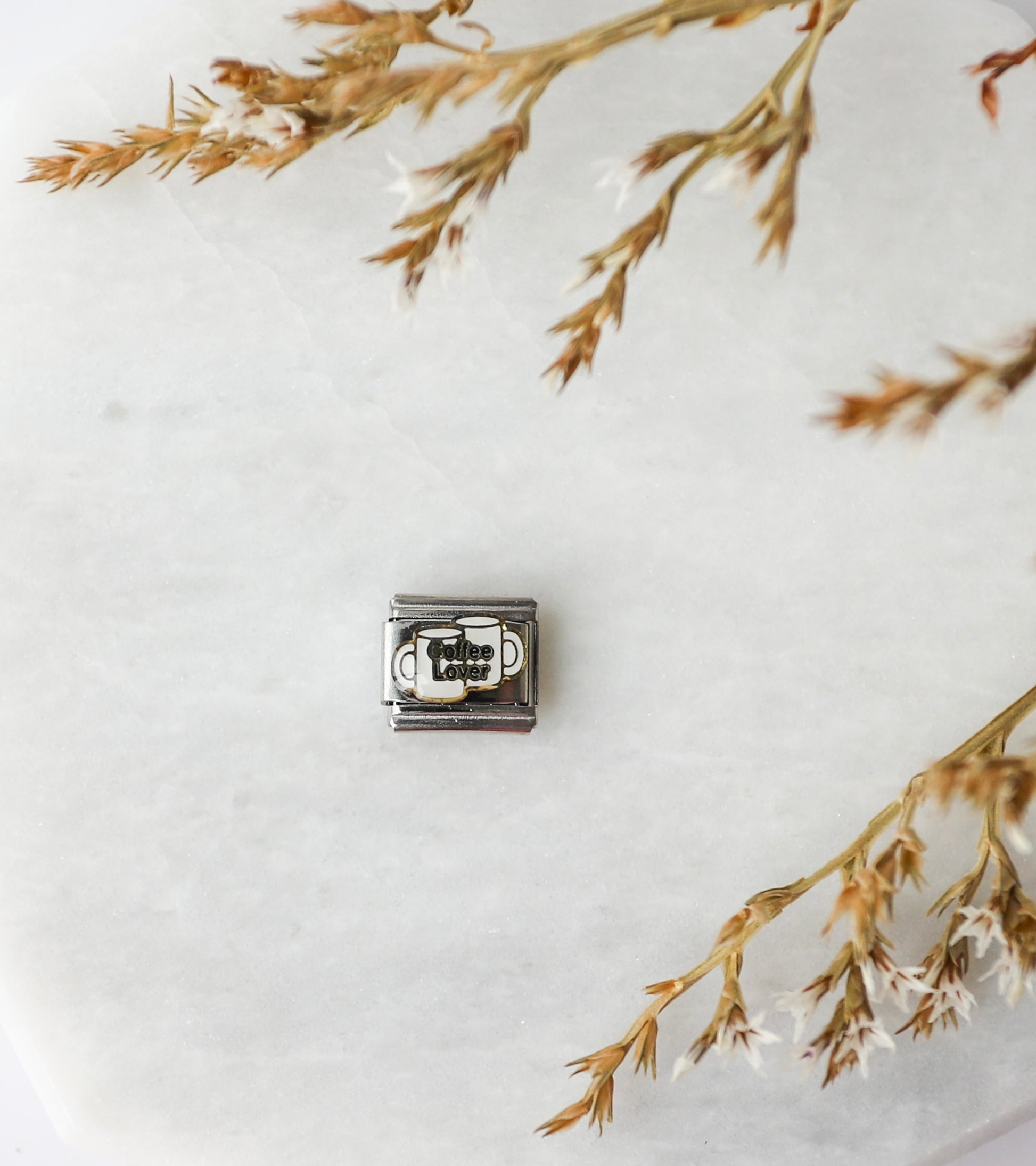 For the caffeine-obsessed, this “Coffee Lover” charm is a must-have. Featuring two cozy coffee mugs and soft neutral tones, it’s the perfect everyday piece for anyone who runs on coffee.